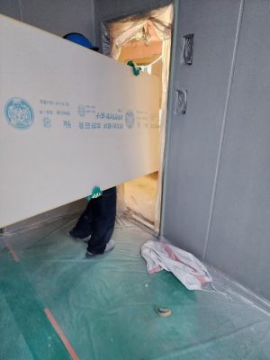 枚方市の現場で行った石膏ボード搬入作業の様子