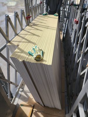 高層階へのボード搬入、どうやってる?東大阪市の現場から
